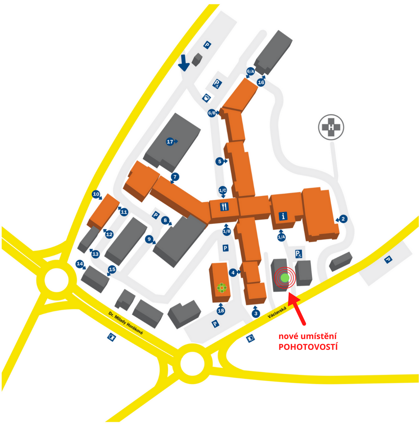 Obě pohotovosti nově pacienti naleznou v objektu před hlavním vstupem do Chrudimské nemocnice nacházejícím se ze strany od ulice Václavské (naproti Penny marketu, viz mapa níže). Regulační poplatek za využití lékařské pohotovostní služby je však nutné uhradit v příjmové kanceláři ve vstupní hale hlavní budovy.