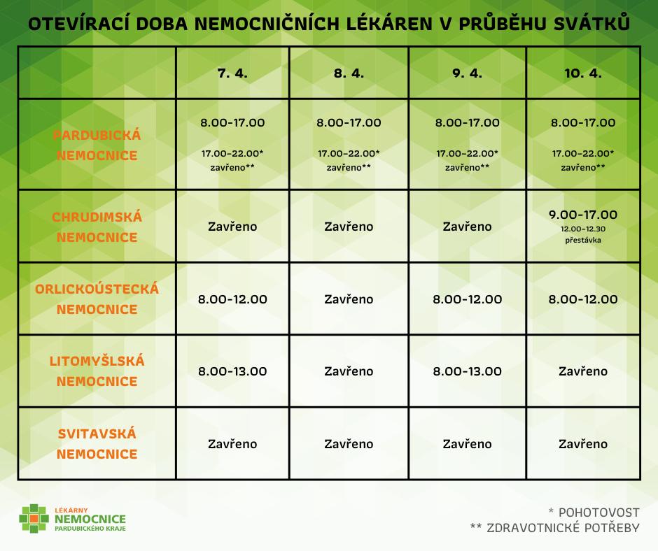 Provozní doba lékáren Nemocnice Pardubického kraje o Velikonocích